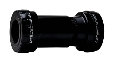 The CS bearings are hand-assembled and installed into aluminum cups that thread together for quiet durability without adapters. There are two bearing options. The first choice is our low drag, long life Standard Bearing, with hardened-steel races and our super round CeramicSpeed balls. The second choice is our Coated Bearing, which uses those same balls installed on coated, hardened-steel races for longer life and less bearing drag.