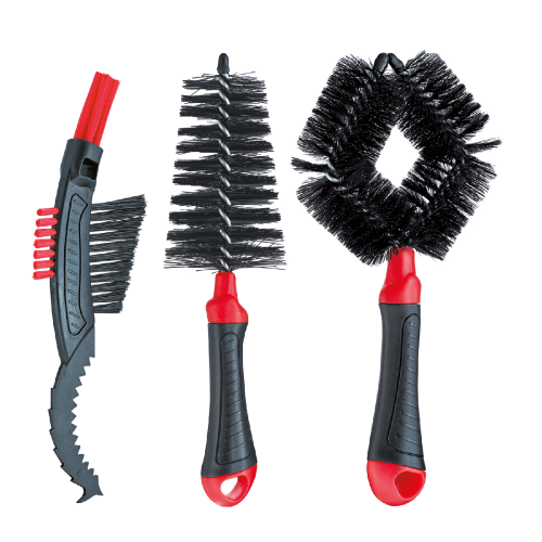- Tapered brush for around brakes, spokes etc