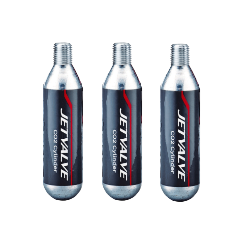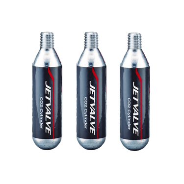 Threaded 25g cylinders designed to be compatible with all Jetvalve products. 1 x 25g cylinder will fill two tyres on average when used with the Jetvalve Inflator Head (SKU 41154)