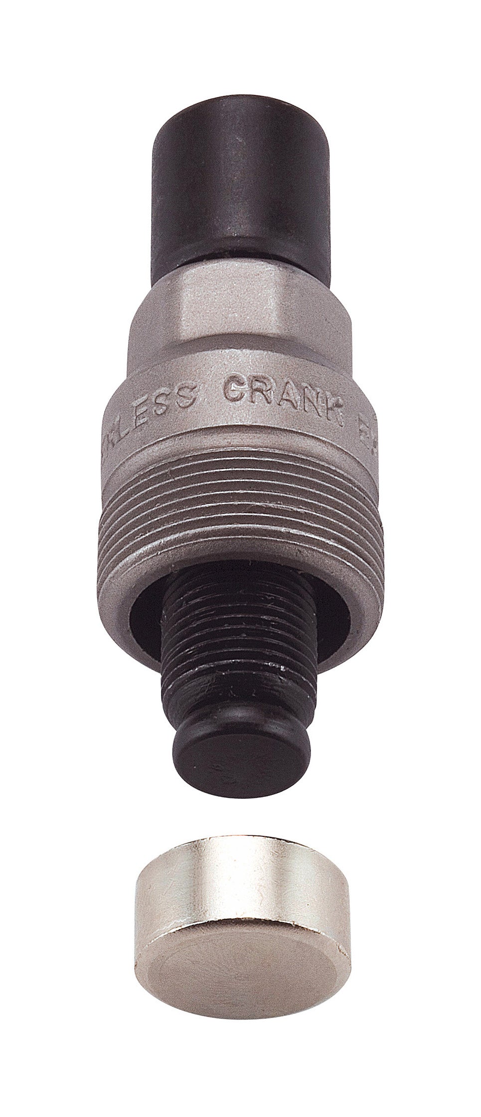 - Crank remover with patented interchangable adapter fits both squared and hollow axles.