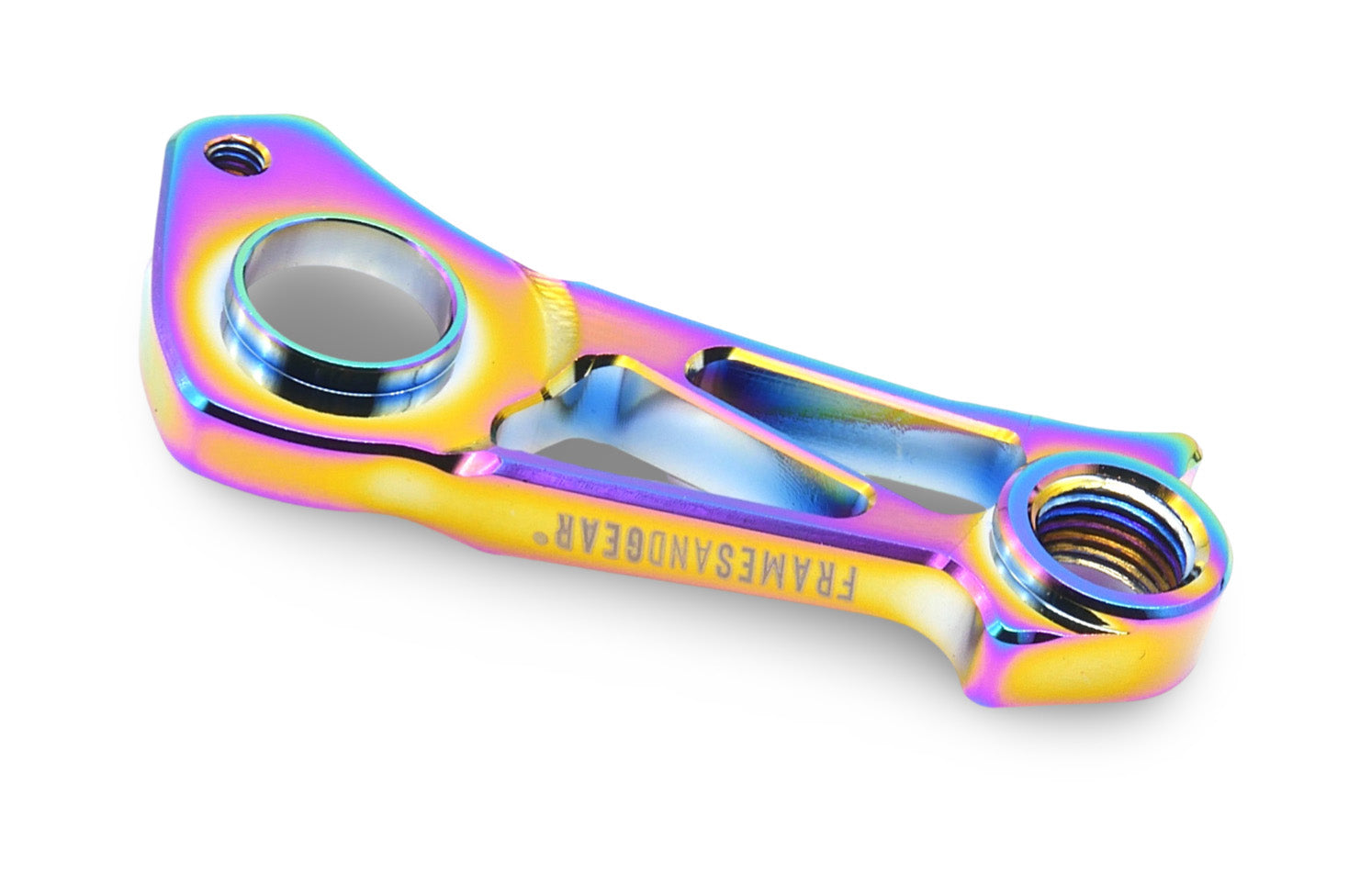 This CNC cut direct derailleur mount cuts 50% weight, and ensures precise shifting while allowing for color customization