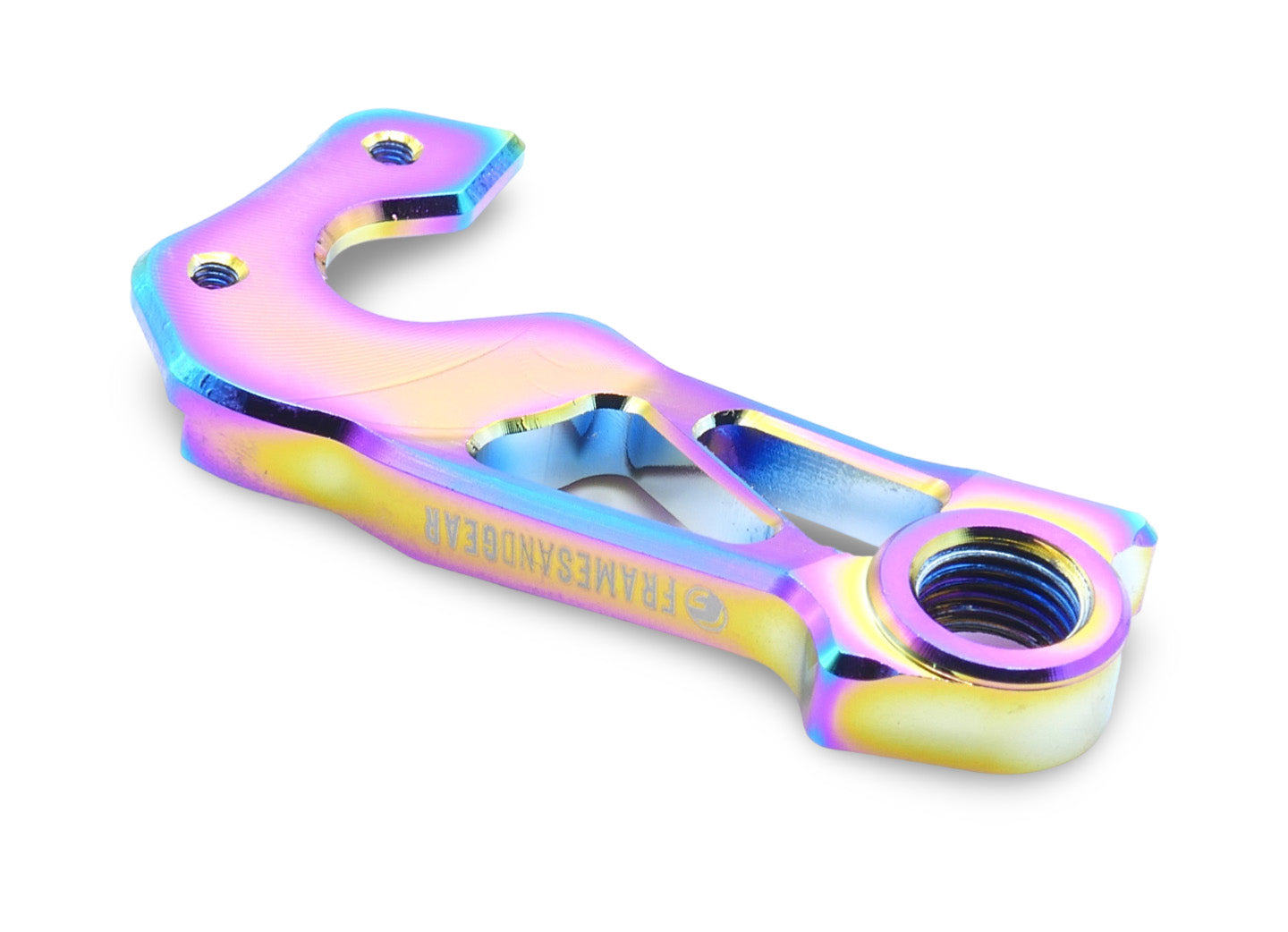 This CNC cut direct derailleur mount cuts 50% weight, and ensures precise shifting while allowing for color customization